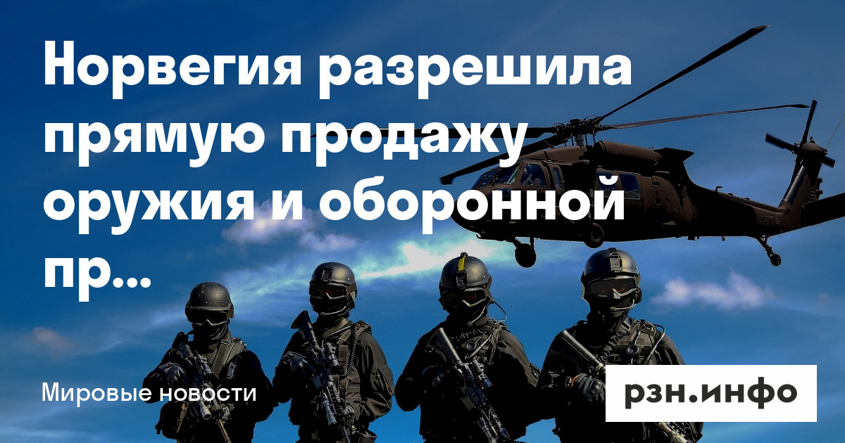 Правительство Норвегии разрешило норвежским компаниям с 1 января осуществлять прямой экспорт оружия и оборонной продукции на Украину. Об этом ТАСС.