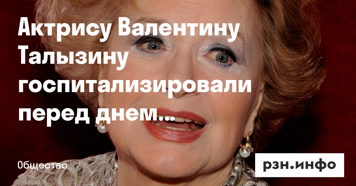 Актрису Валентину Талызину госпитализировали перед днем рождения. Об этом сообщил телеканал РЕН ТВ.