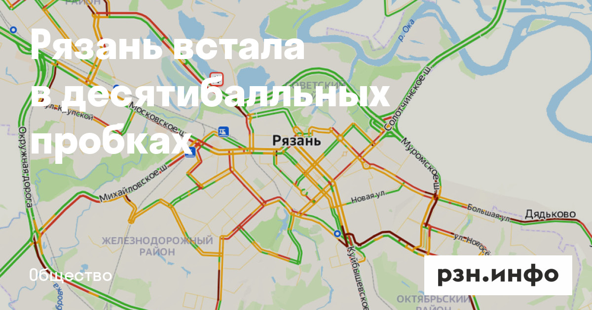 Рязань встала в десятибалльных пробках. Об этом свидетельствуют данные сервиса «Яндекс.Карты».