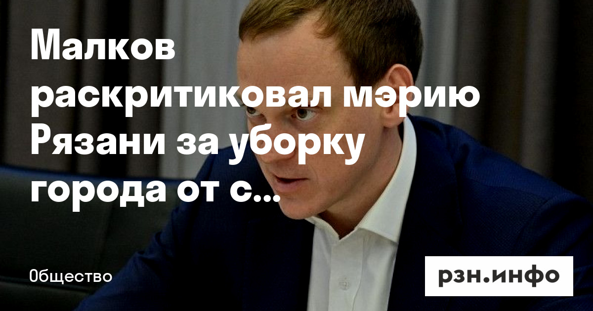 Губернатор Рязанской области Павел Малков раскритиковал мэрию областного центра за действия по уборке дорог и тротуаров от снега и наледи. Об этом сообщил .