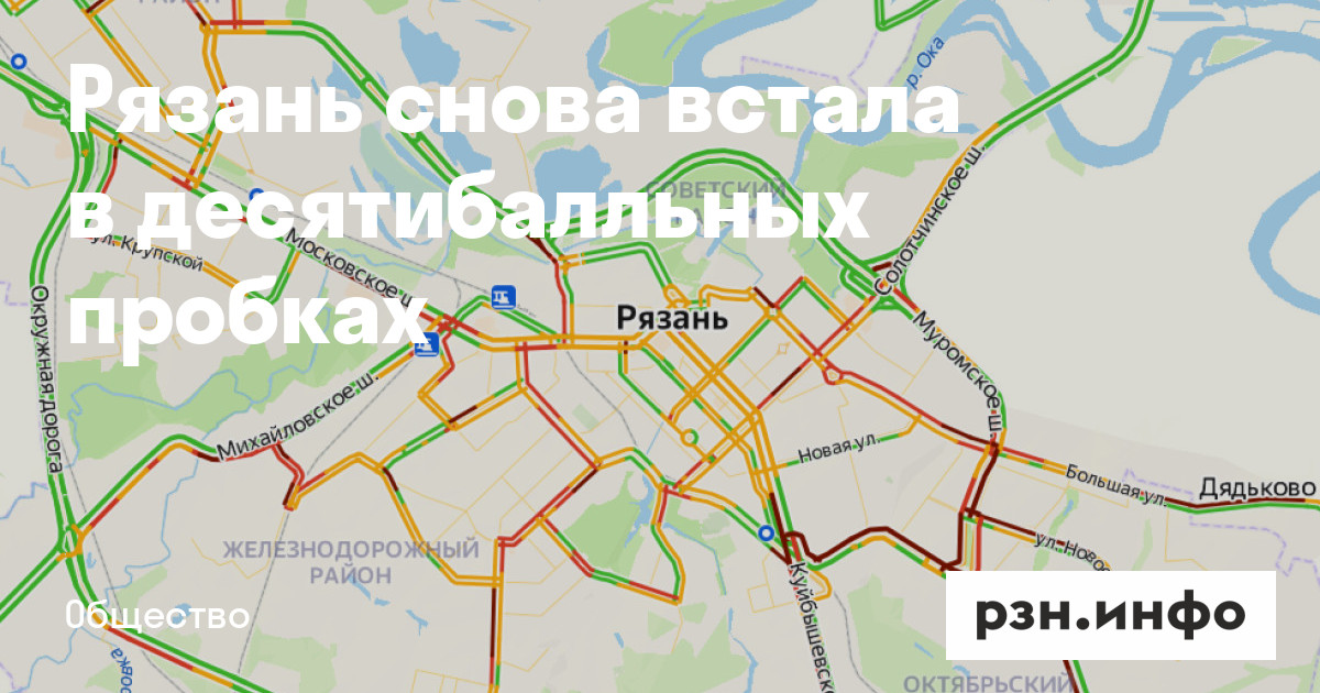 Рязань снова встала в десятибалльных пробках