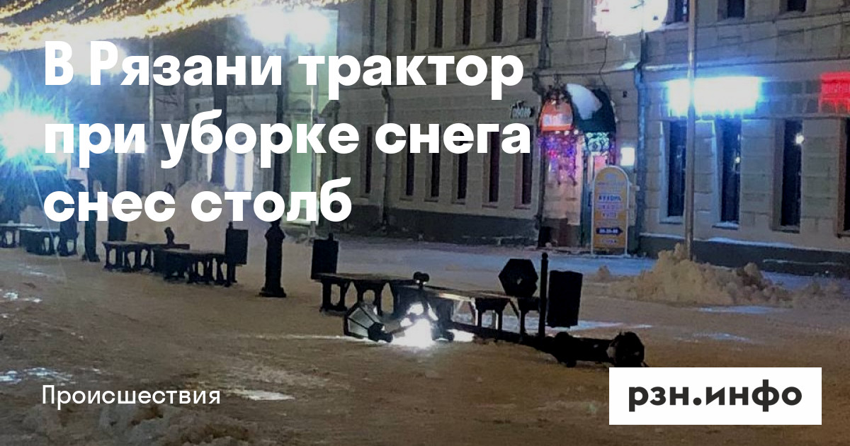 В Рязани трактор при уборке снега снес столб