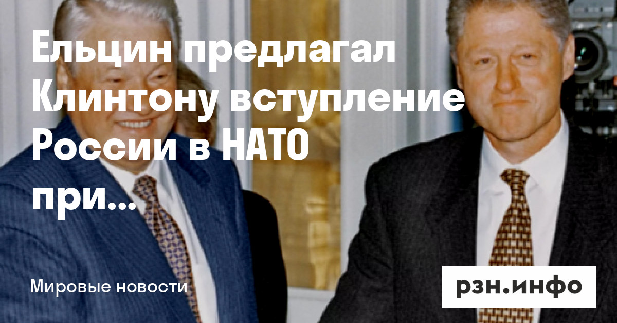 Согласно данным в ней, в 1994 году экс-президент России Борис Ельцин на встрече со своим американским коллегой Биллом Клинтоном заявил, что Россия в случае расширения НАТО должна первой присоединиться к альянсу.