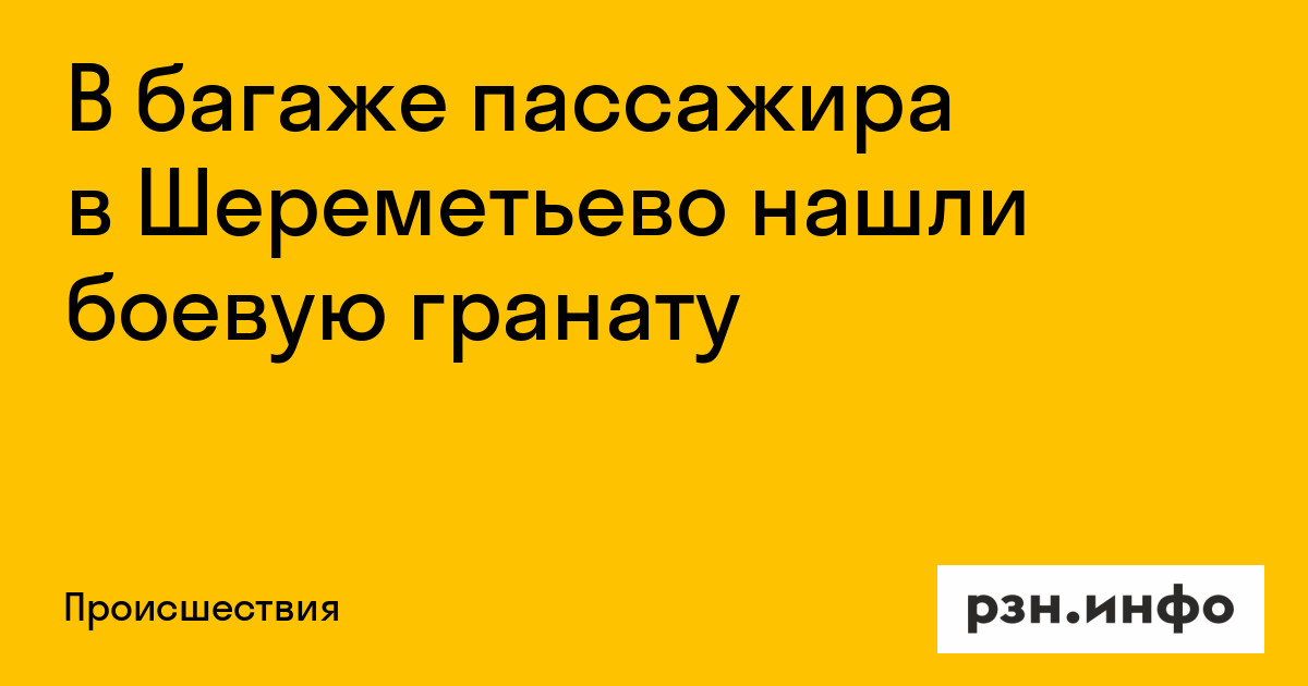 В багаже пассажира в Шереметьево нашли боевую гранату. Об этом сообщает Telegram-канал Mash. .