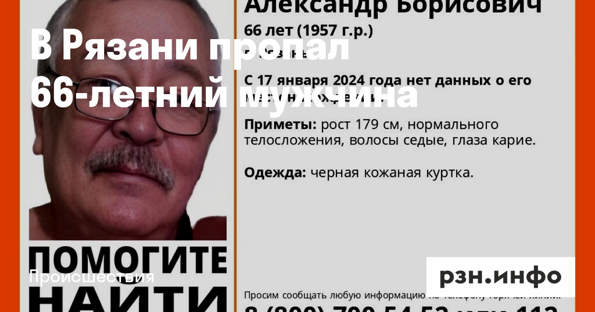 В день пропажи был одет в черную кожаную куртку.