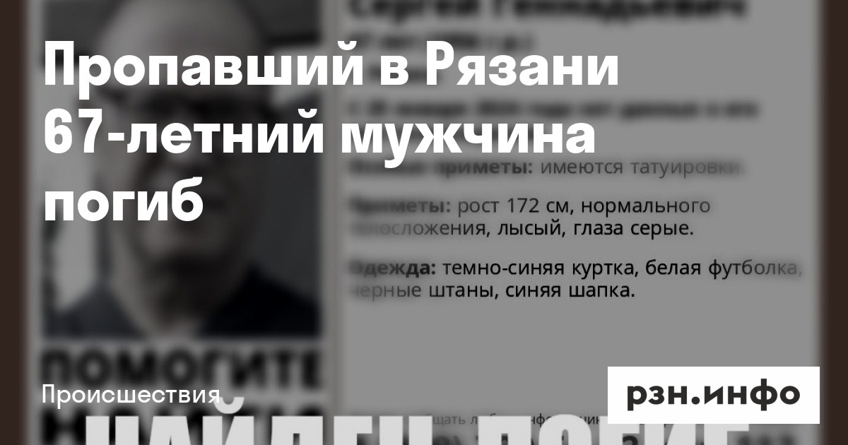 Пропавший в Рязани 67-летний мужчина погиб. Об этом сообщили в ПСО «ЛизаАлерт».