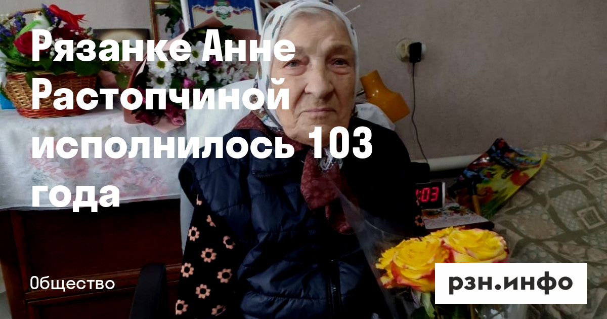Рязанке Анне Растопчиной исполнилось 103 года. Об этом сообщает пресс-служба мэрии.