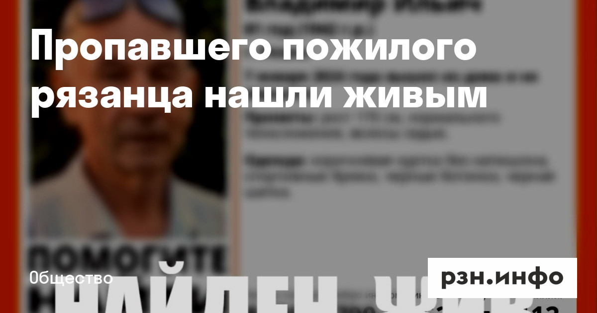 В Рязани нашли пропавшего 81-летнего пенсионера. Мужчина жив, об этом сообщают волонтеры ПСО «ЛизаАлерт».
