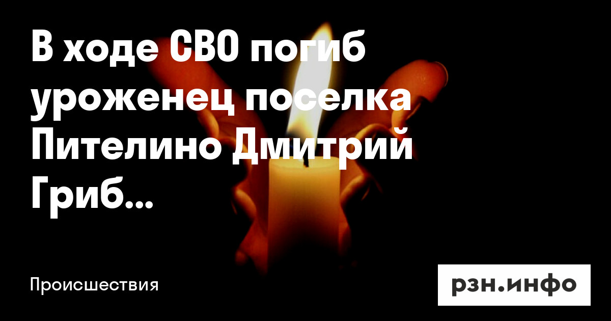 В ходе специальной военной операции на Украине, при исполнении обязанностей военной службы, погиб уроженец поселка Пителино Дмитрий Грибков. Об этом сообщается в Telegram-канале Пителинского района.