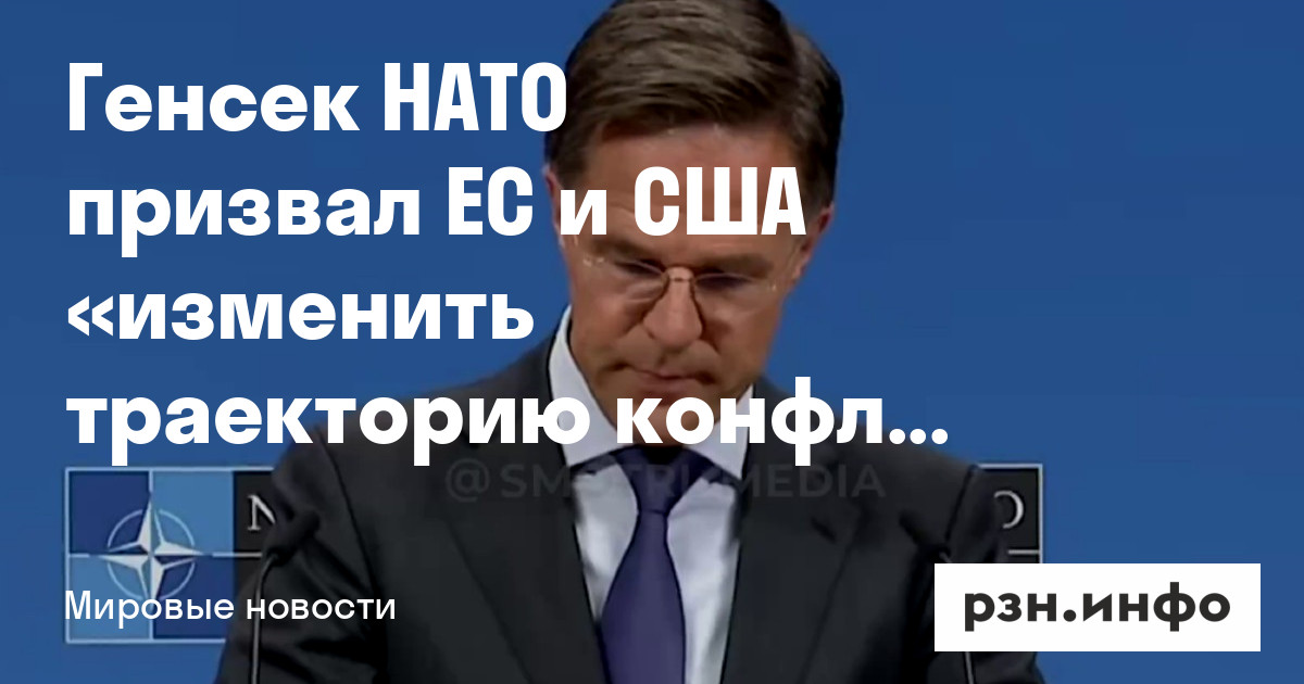 Генсек НАТО Марк Рютте заявил, что ЕС и США совместно должны увеличивать помощь Киеву, чтобы «изменить траекторию конфликта».