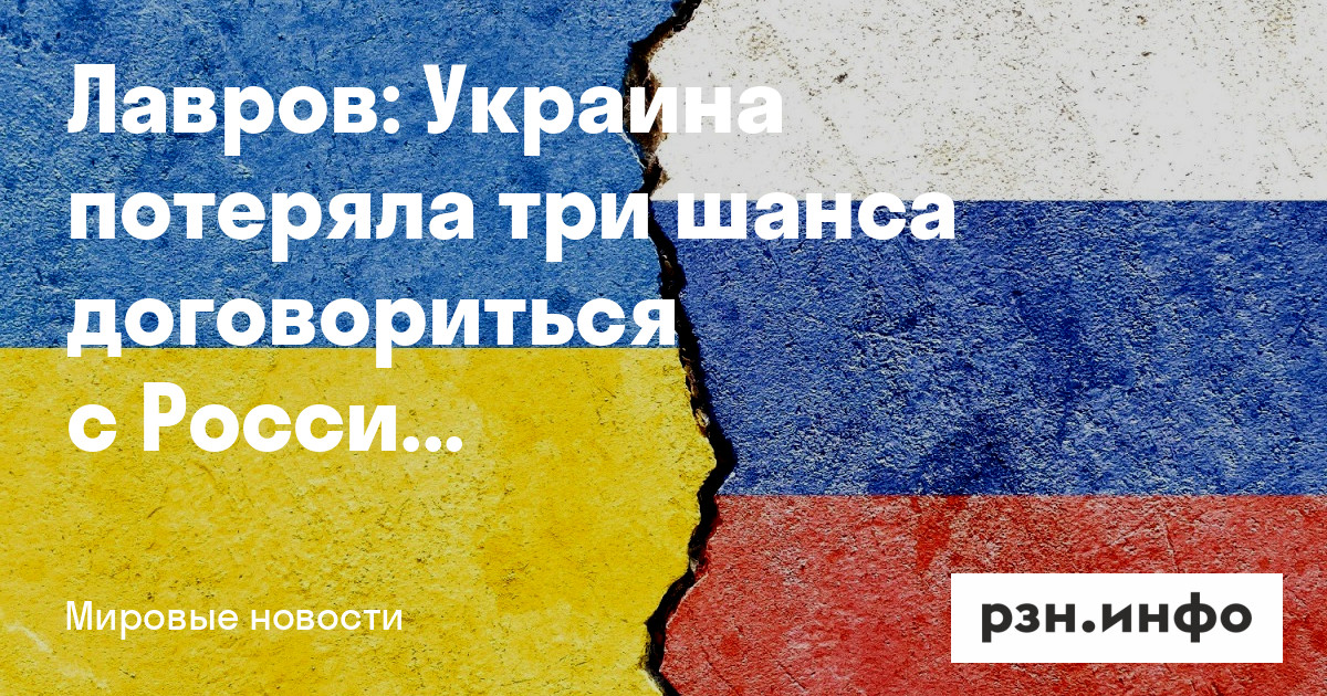 Украина потеряла три шанса договориться с Россией. Об этом заявил глава МИД России Сергей Лавров, его цитирует РБК.
