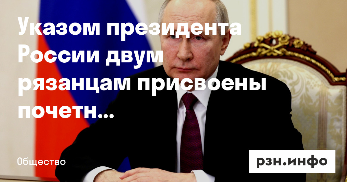 Указом президента России двум рязанцам присвоены почетные звания. Об этом говорится на официальном сайте правовой информации.
