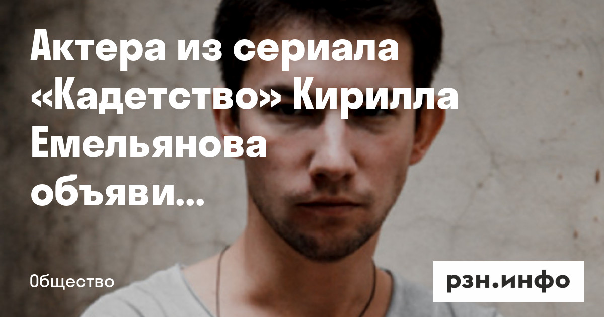 Актера из сериала «Кадетство» Кирилла Емельянова объявили в розыск