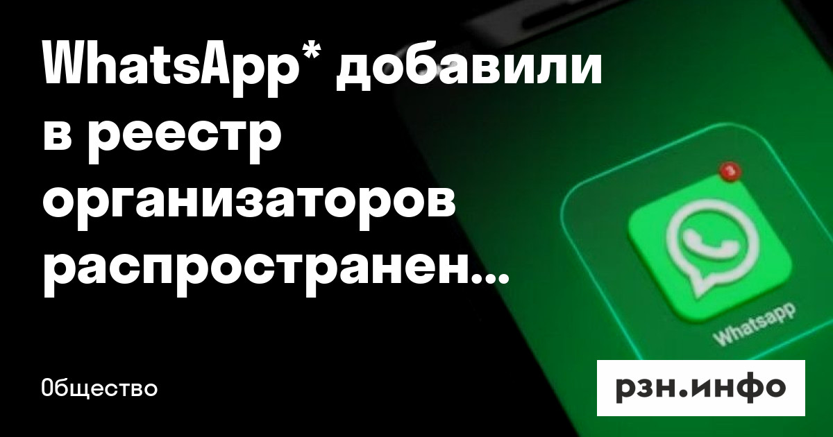 Роскомнадзор принудительно внес в реестр организаторов распространения информации (ОРИ) мессенджер WhatsApp*. Об этом сообщили «Ведомости».