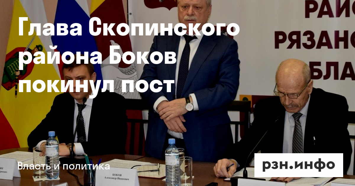 Глава Скопинского района Боков покинул пост. Об этом сообщает ИД «Пресса».