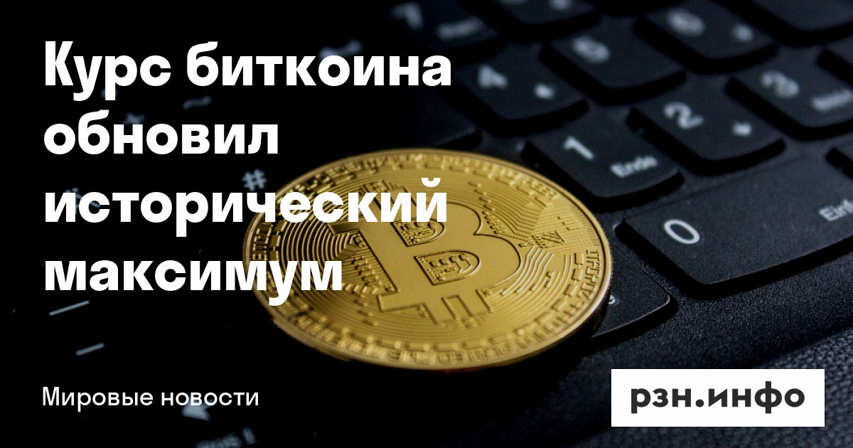 Курс биткоина обновил исторический максимум. Об этом пишет РБК со ссылкой на биржу Binance.
