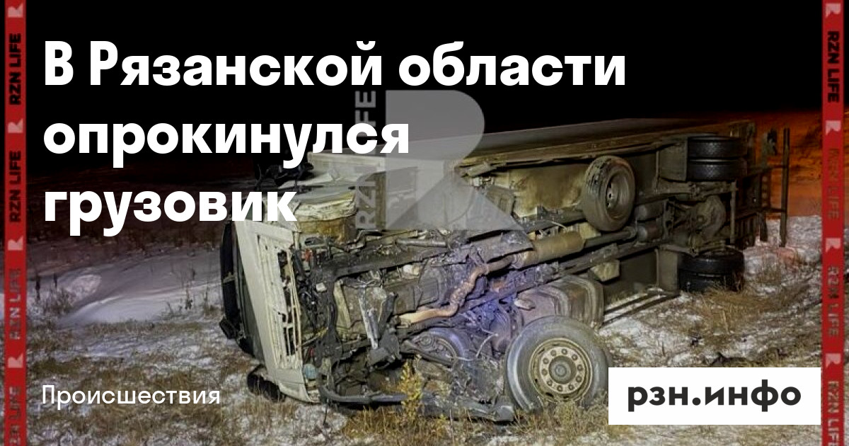В Рязанской области утром в воскресенье, 8 декабря, опрокинулся грузовик. Об этом сообщили в соцсетях.