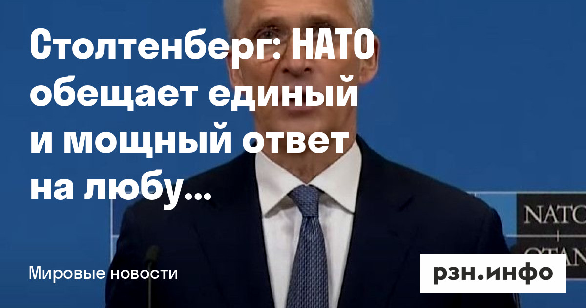 Столтенберг заявил, что НАТО обещает единый и мощный ответ на любую атаку на альянс. Об этом сообщило РИА Новости со ссылкой на Reuters.