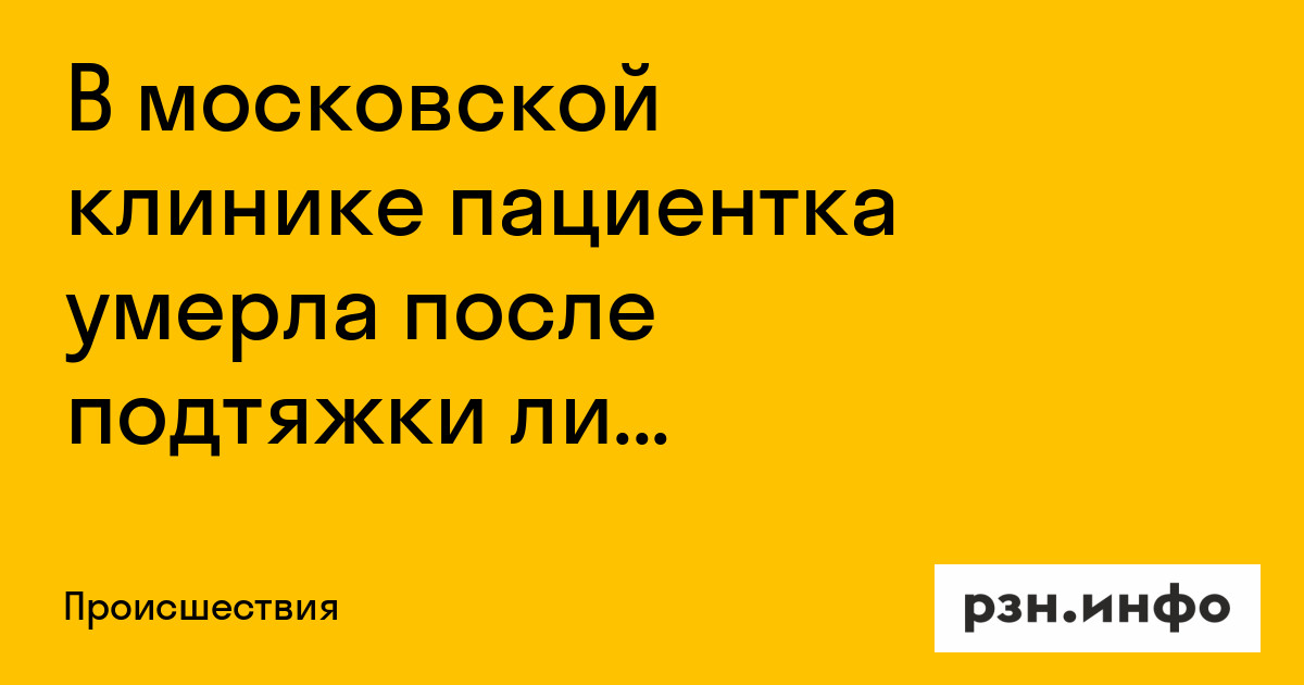 В московской клинике пациентка умерла после подтяжки лица. Об эом сообщает Telegram-канал «112».