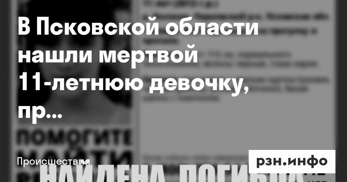 В Псковской области нашли мертвой 11-летнюю девочку, пропавшую два месяца назад