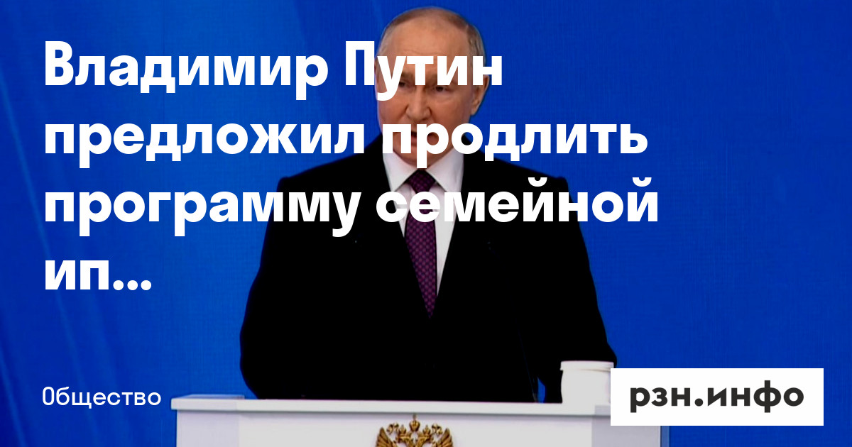 Владимир Путин предложил продлить программу семейной ипотеки до 2030 года. Об этом он заявил во время послания Федеральном собранию.