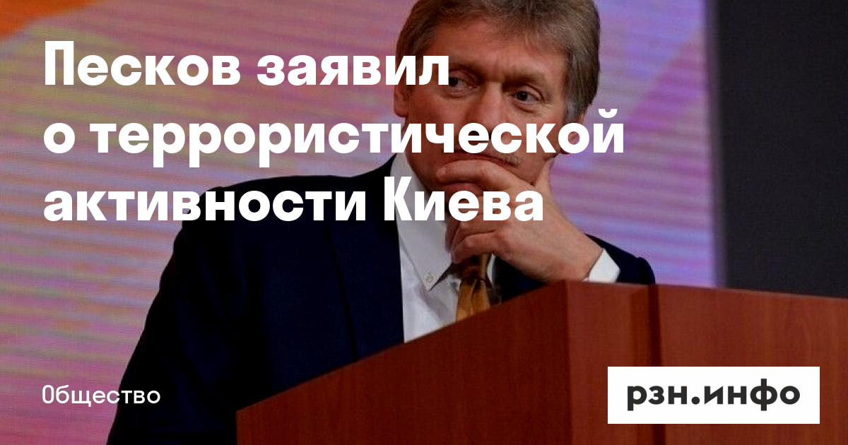 Пресс-секретарь президента России Дмитрий Песков заявил о террористической активности Киева. Об этом сообщает RT.