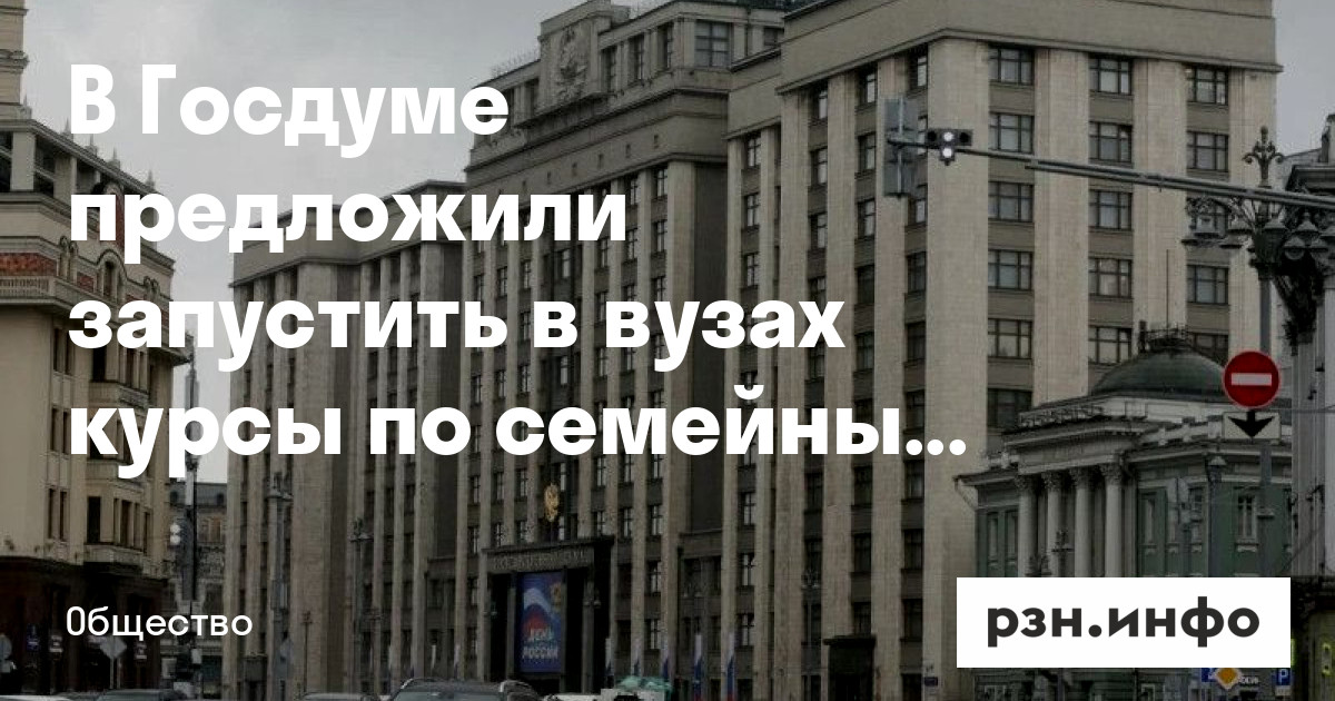 В Госдуме предложили запустить в вузах курсы по семейным ценностям. Об этом пишет РИА Новости со ссылкой на депутата Яну Лантратову.