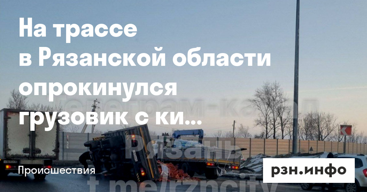 На трассе в Рязани опрокинулся грузовик с кирпичами. Об этом сообщает Telegram-канал «Рязань».