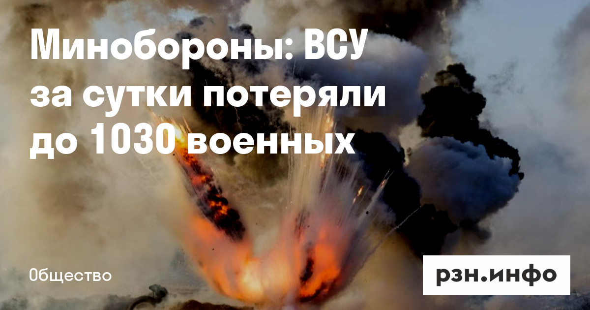 Минобороны: ВСУ за сутки потеряли до 1030 военных