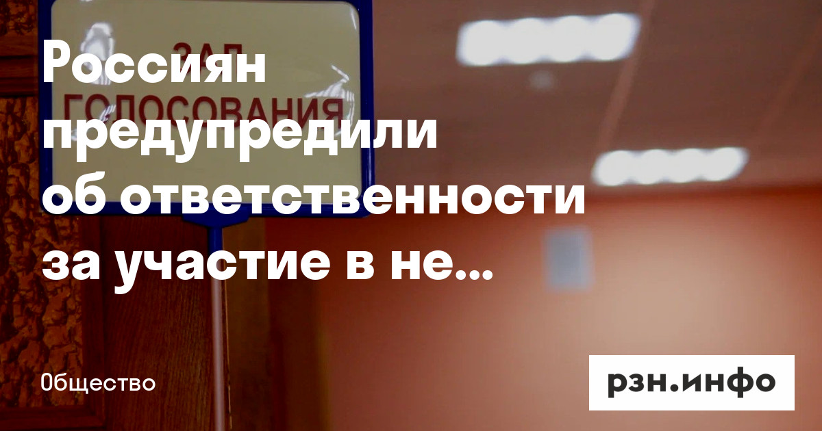 Россиян предупредили об ответственности за участие в несогласованных мероприятиях на избирательных участках