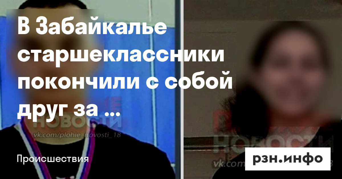 В Забайкалье старшеклассники покончили с собой друг за другом. Об этом сообщил паблик «Плохие новости».