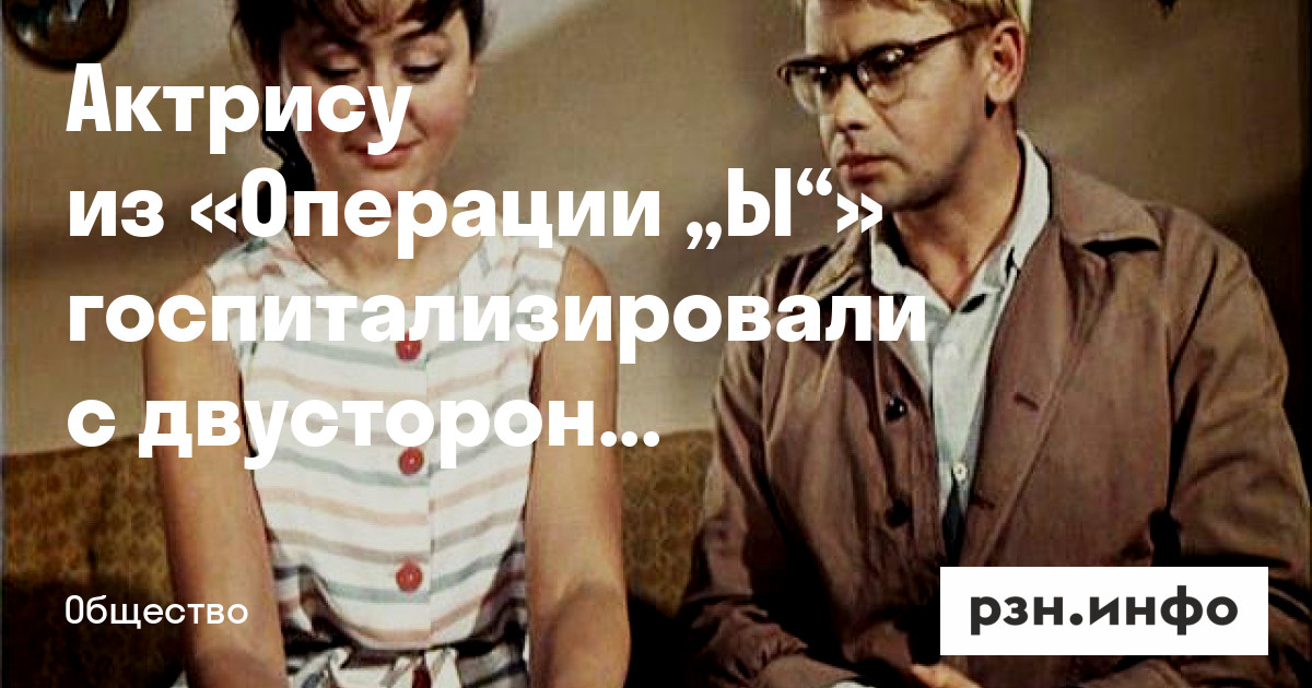 Актрису из «Операции „Ы“» госпитализировали с двусторонней пневмонией