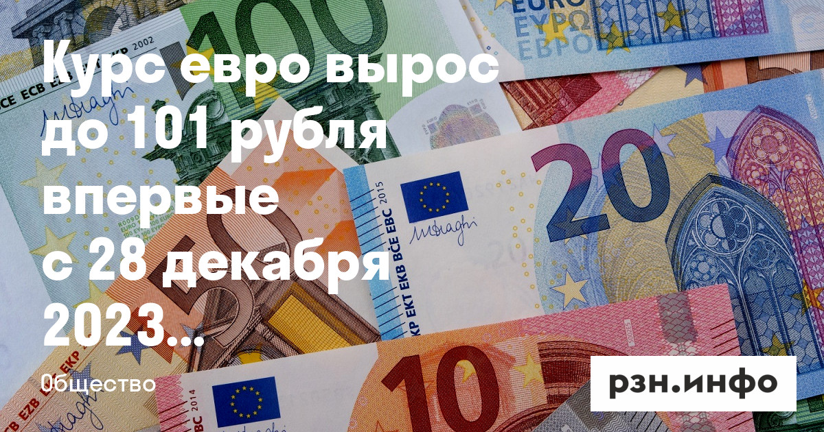 Курс евро вырос до 101 рубля впервые с 28 декабря 2023 года