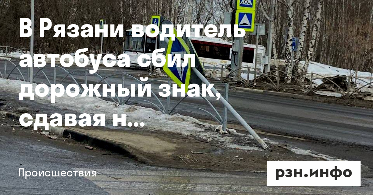 В Рязани водитель автобуса сбил дорожный знак, сдавая назад. Пост об этом появился в Telegram-канале «Новости Рязани и области».