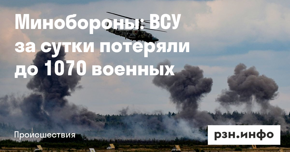 Минобороны: ВСУ за сутки потеряли до 1070 военных