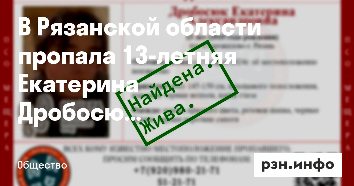 В Рязанской области пропала 13-летняя Екатерина Дробосюк. Об этом сообщил ПСО «Мещера».