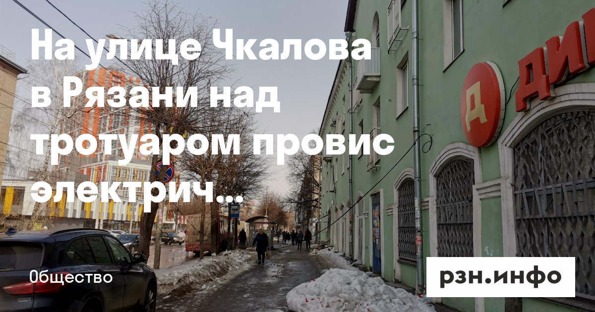 На улице Чкалова в Рязани над тротуаром провис электрический провод. Об этом РЗН. Инфо сообщил читатель.