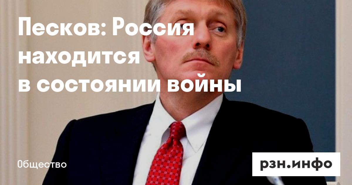 Пресс-секретарь президента РФ Дмитрий Песков заявил, что Россия находится в состоянии войны. Слова представителя Кремля приводит АИФ.