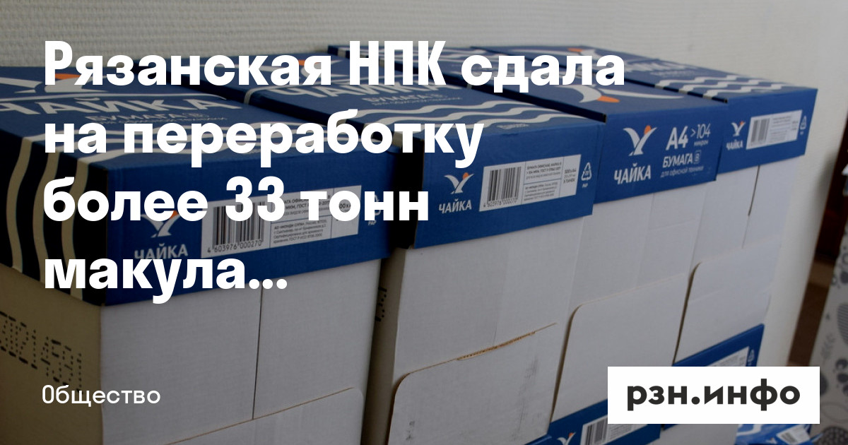 Рязанская НПК сдала на переработку более 33 тонн макулатуры в 2023 году
