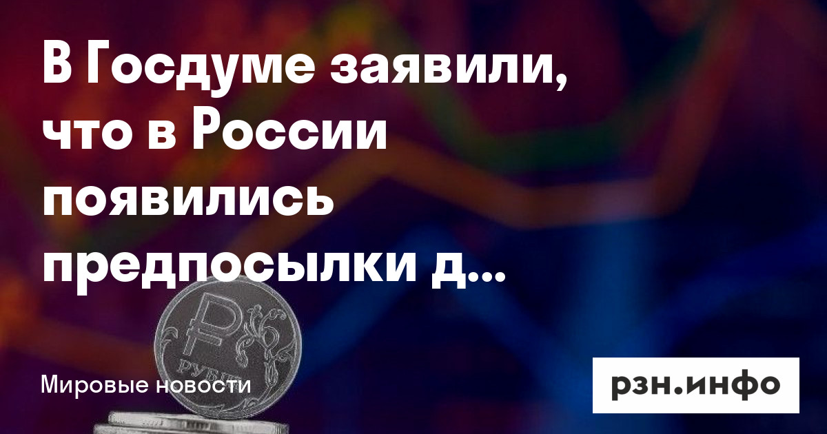 В Госдуме заявили, что в России появились предпосылки для снижения ключевой ставки. Об этом ТАСС сообщил глава комитета Госдумы по финансовому рынку Аксаков.