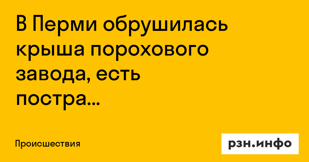 В Перми обрушилась крыша порохового завода, есть пострадавшие. Об этом пишет «112».