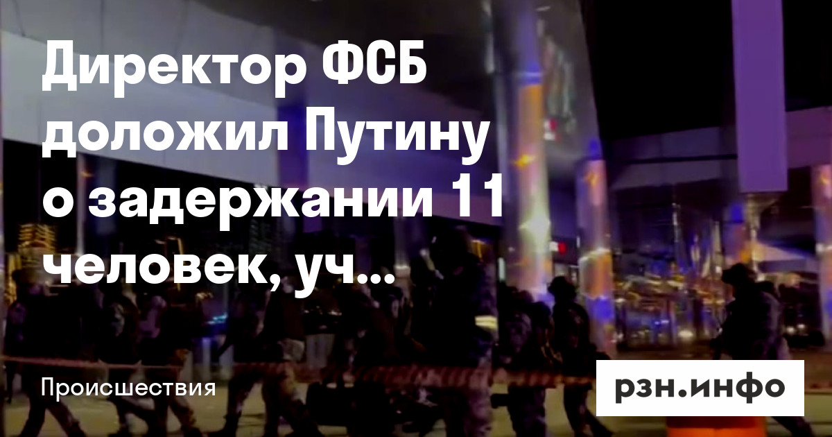 Директор ФСБ Александр Бортников доложил президенту Владимиру Путину о задержании 11 человек, в том числе 4 террористов, участвовавших в теракте в «Крокус сити холле».