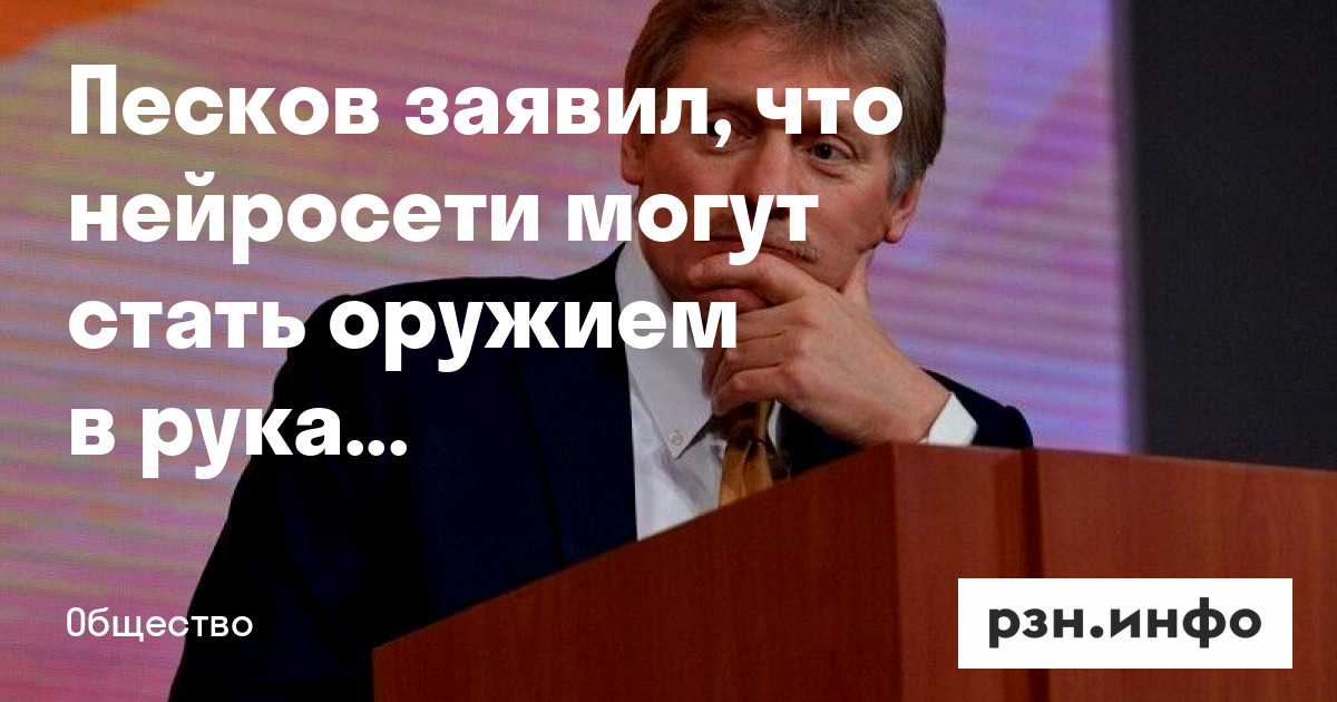 Пресс-секретарь президента России Дмитрий Песков заявил, что нейросети могут стать оружием в руках террористов и недобросовестных людей. Об этом сообщило .