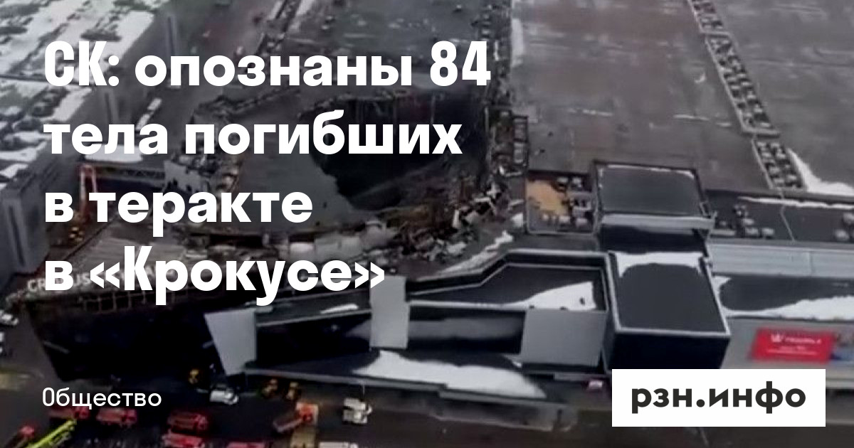 По информации СК, опознаны 84 тела погибших — среди них пятеро детей от девяти до 16 лет. Для установления личностей погибших проводятся молекулярно-генетические экспертизы.