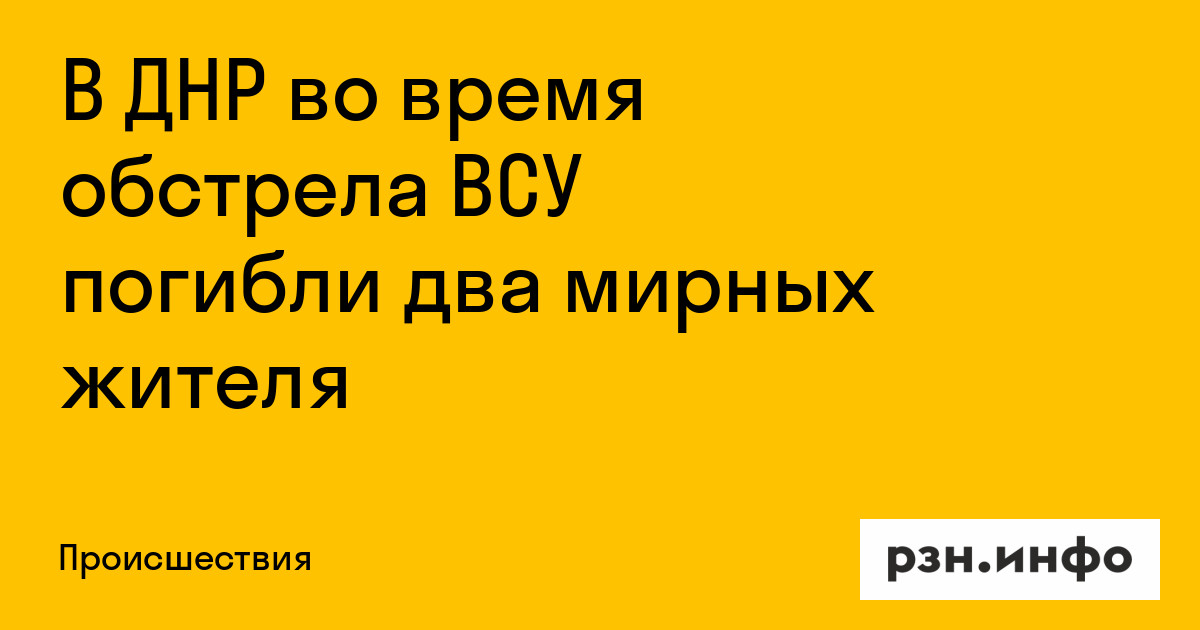 В ДНР во время обстрела ВСУ погибли два мирных жителя
