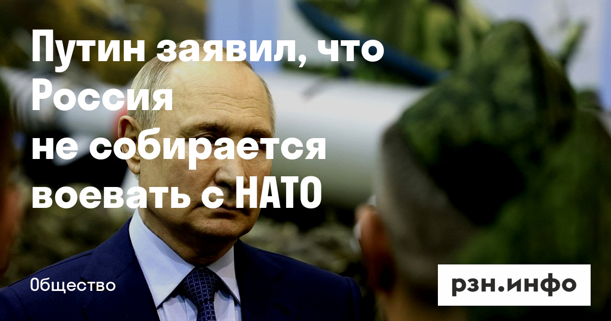 Президент РФ Владимир Путин заявил, что Россия не собирается воевать с НАТО. Об этом сообщило .