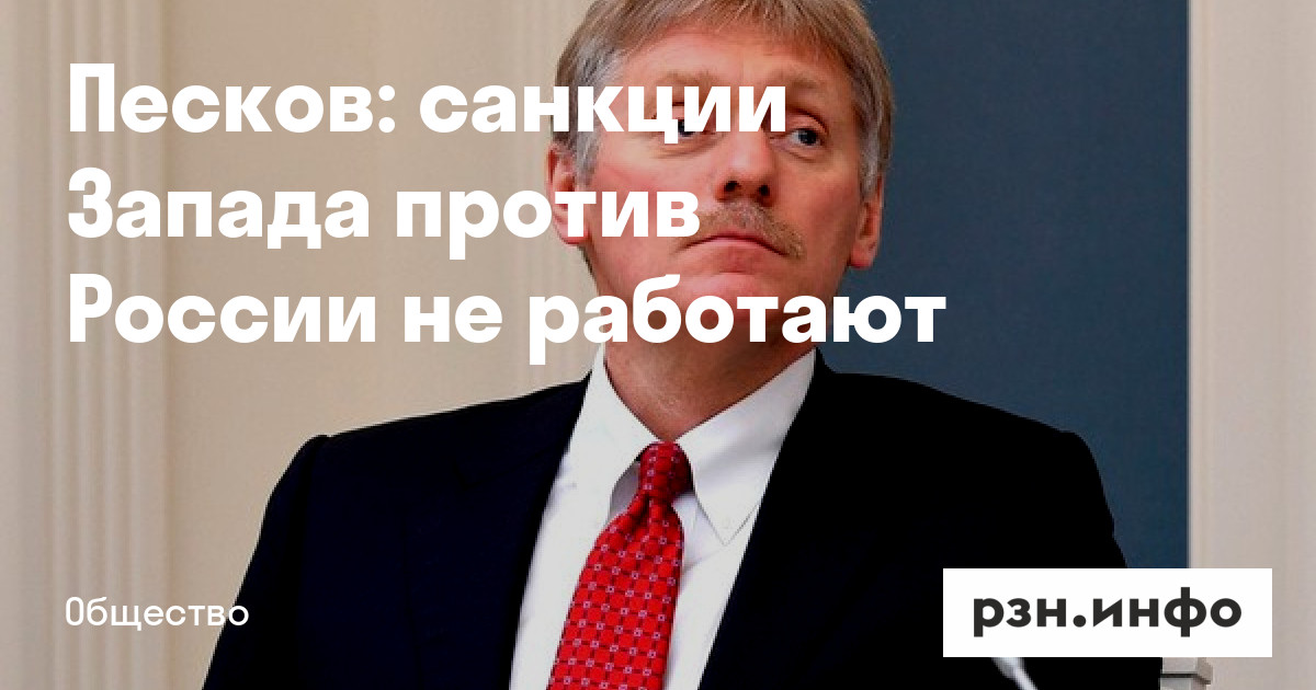 Пресс-секретарь президента Дмитрий Песков заявил, что санкции Запада не работают против России. Об этом пишет .