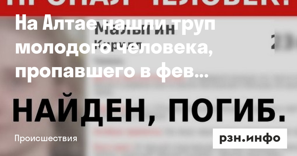 На Алтае нашли труп молодого человека, пропавшего в феврале. Об этом сообщает портал «Новости Горного Алтая».