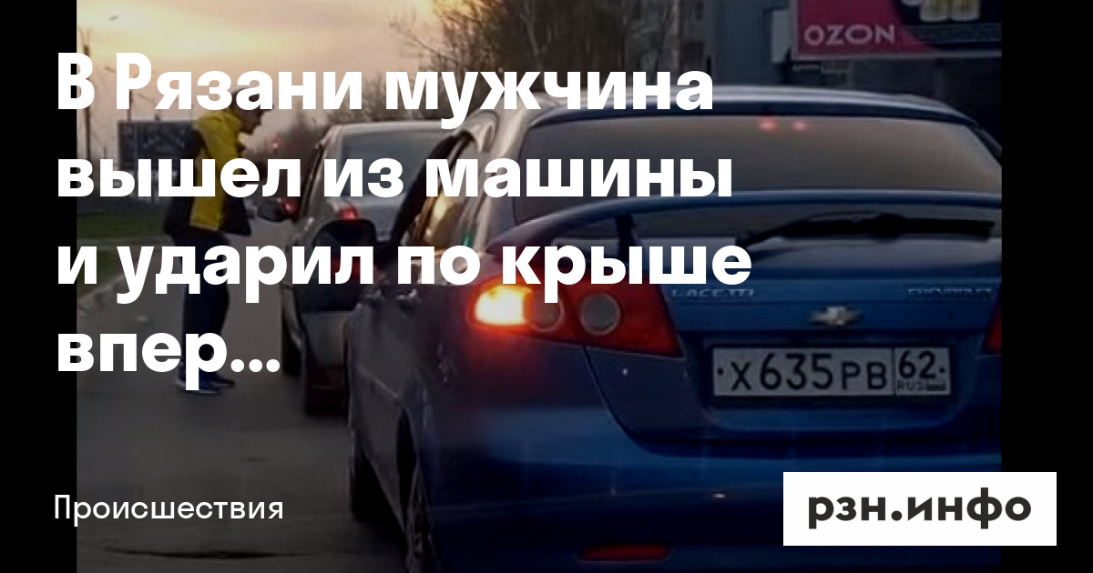 В Рязани пассажир Chevrolet Lacetti вышел из машины, подошел к впереди стоящему Renault Logan, поговорил с водителем и ударил по крыше. Ролик, на котором мужчина агрессивно себя ведет, опубликовала группа «ПУВР».