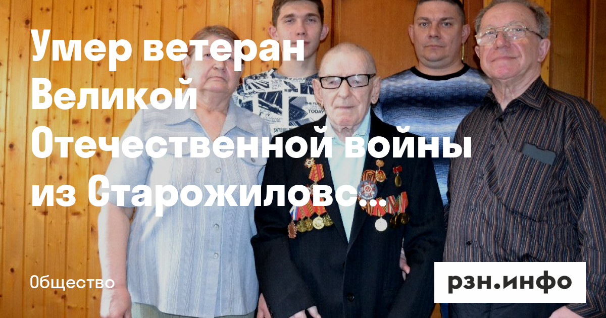 Умер участник Великой Отечественной войны из Старожиловского района Александр Поворов. Об этом сообщило издательство «Пресса».